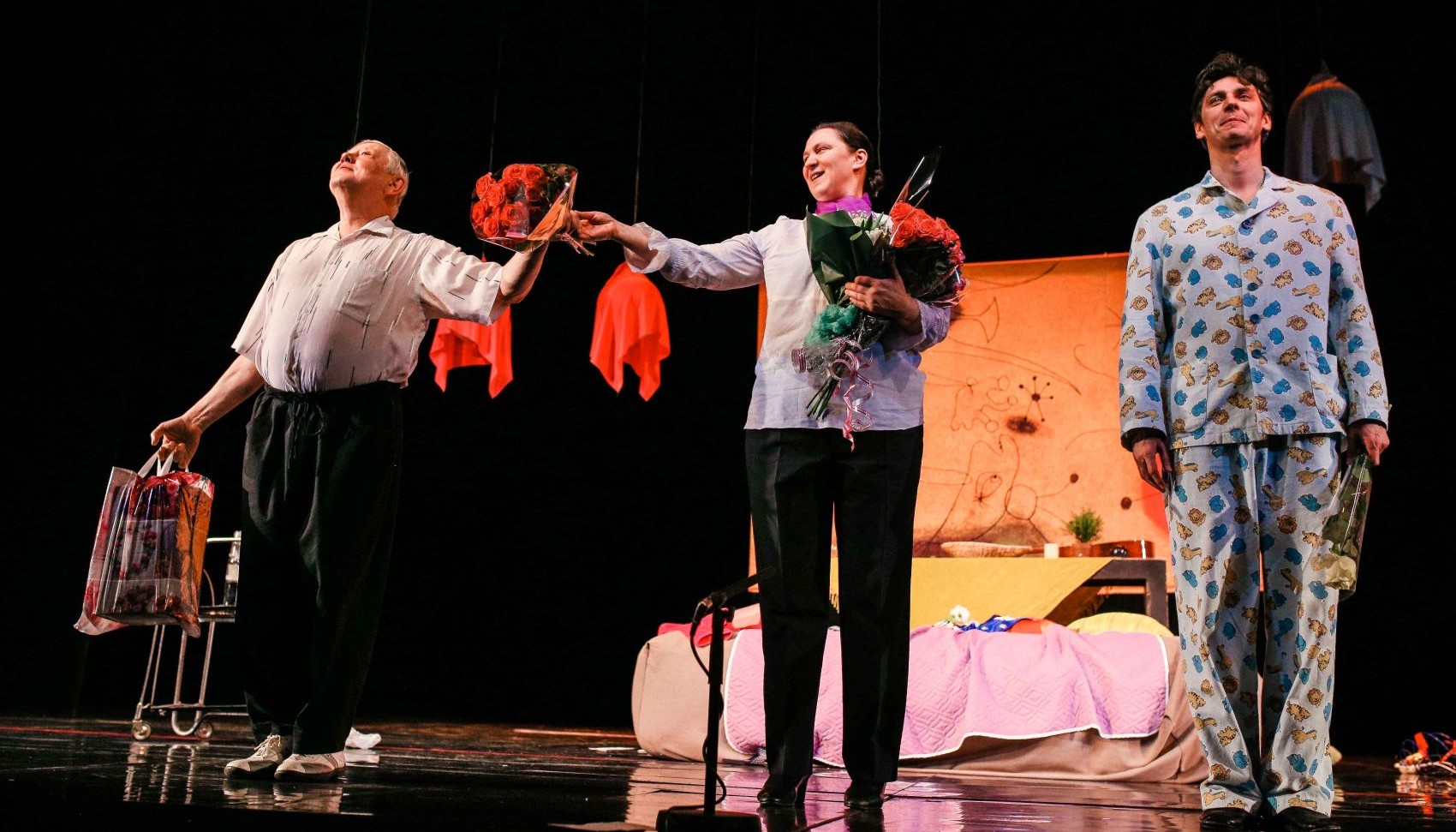 Поставил спектакль режиссер Роман Самгин, ученик Марка Захарова, обладатель премии за лучшую режиссуру «Московский дебют» и премии за лучший спектакль на театральном фестивале в Брно. Как и в других его работах, в «Вокзале для троих» через смех и слезы ярко раскрываются человеческие судьбы и характеры.